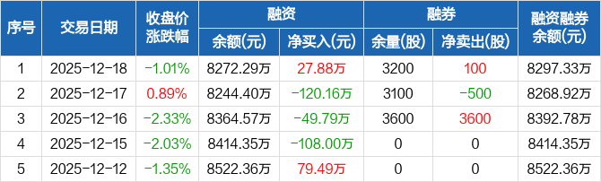 夏厦精密:融资净买入27.88万元,融资余额8272.29万元(12-18)