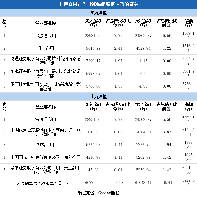 多主力现身龙虎榜,德明利涨停(12-08)