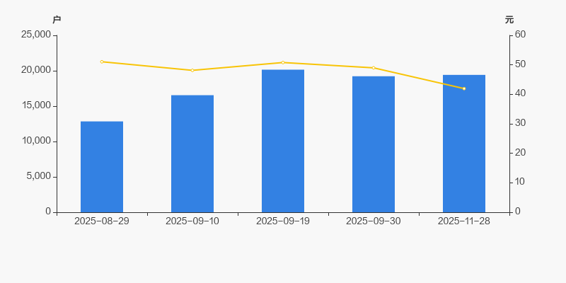 2025年8月29日至今,公司股东户数显著大幅增长,区间涨幅达51.21%。2025年8月29日至2025年11月28日区间股价下降17.83%。