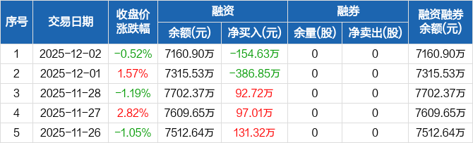 长青科技:融资净偿还154.63万元,融资余额7160.9万元(12-02)