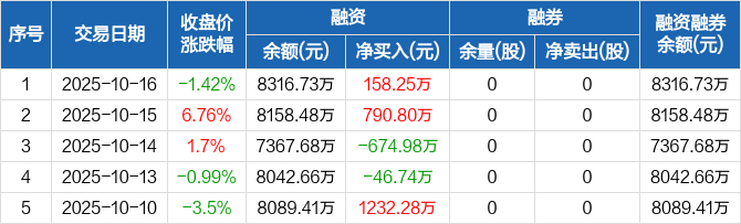 联域股份:融资净买入158.25万元,融资余额8316.73万元(10-16)
