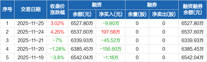 联域股份:融资净偿还9.8万元,融资余额6527.8万元(11-25)