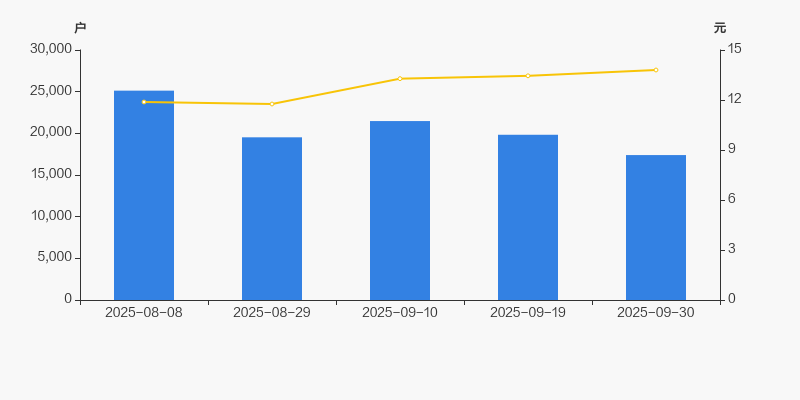 2025年8月8日至今,公司股东户数显著下降,区间跌幅为30.78%。2025年8月8日至2025年9月30日区间股价上涨16.16%。