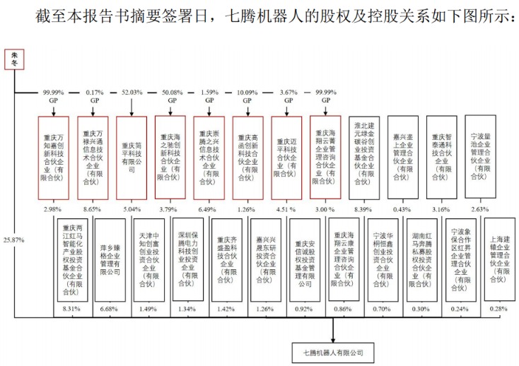 本次交易完成后,七腾机器人将拥有上市公司 44.99%的股份及该等股份对应的表决权,上市公司控股股东变更为“七腾机器人”,实际控制人变更为朱冬。
