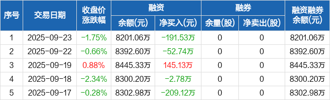信凯科技:融资净偿还191.53万元,融资余额8201.06万元(09-23)