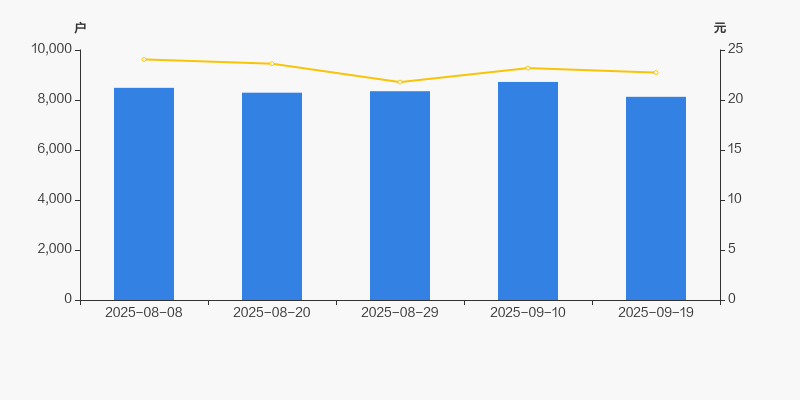 2025年8月8日至今,公司股东户数有所下降,区间跌幅为4.24%。2025年8月8日至2025年9月19日区间股价下降5.49%。