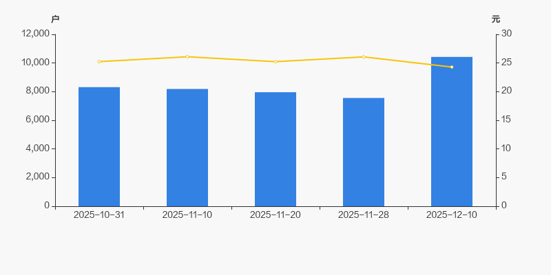 2025年10月31日至今,公司股东户数显著增长,区间涨幅为25.39%。2025年10月31日至2025年12月10日区间股价下降3.72%。