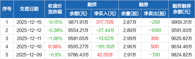 富岭股份:融资净买入317.7万元,融资余额9871.91万元(12-15)