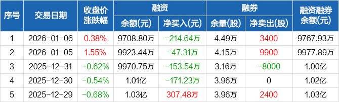 富岭股份:连续4日融资净偿还累计586.72万元(01-06)
