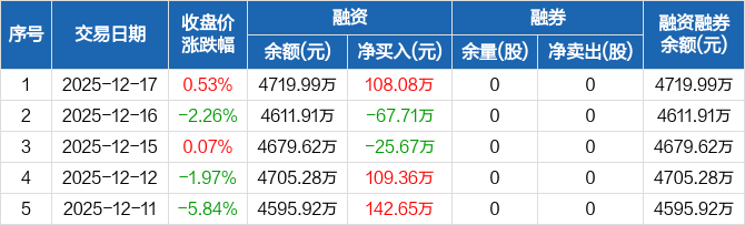 翔腾新材:融资净买入108.08万元,融资余额4719.99万元(12-17)