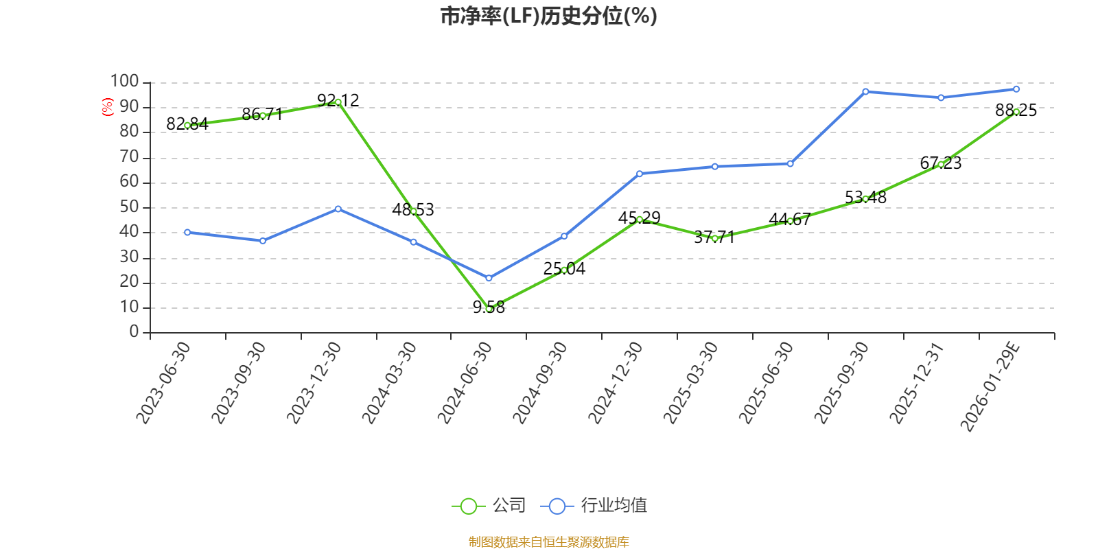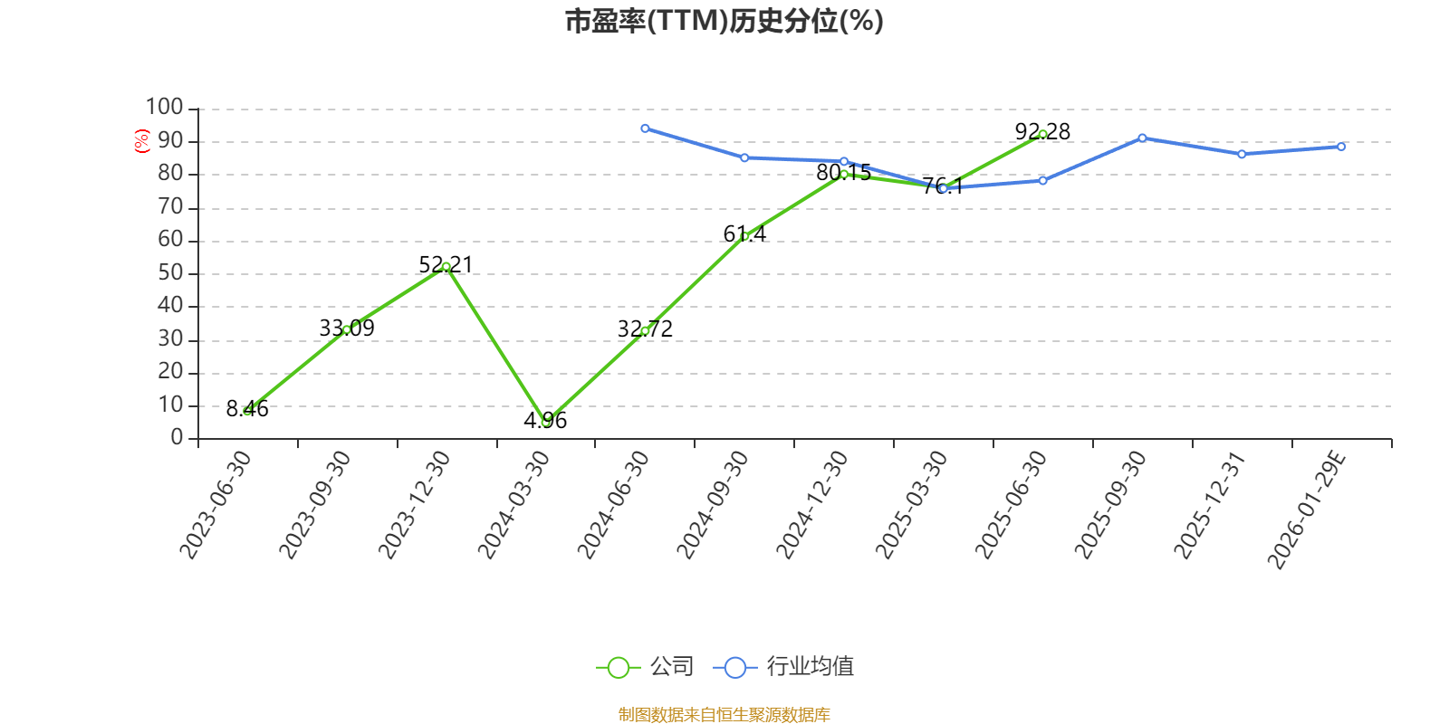 市盈率、市净率为负时,不显示当期分位数,会导致折线图中断。