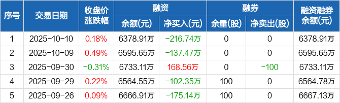 德冠新材:融资净偿还216.74万元,融资余额6378.91万元(10-10)