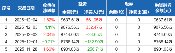 腾达科技:融资净买入561.05万元,融资余额9637.61万元(12-04)