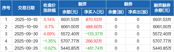 新亚电缆:融资净买入870.53万元,融资余额6931.53万元(10-10)