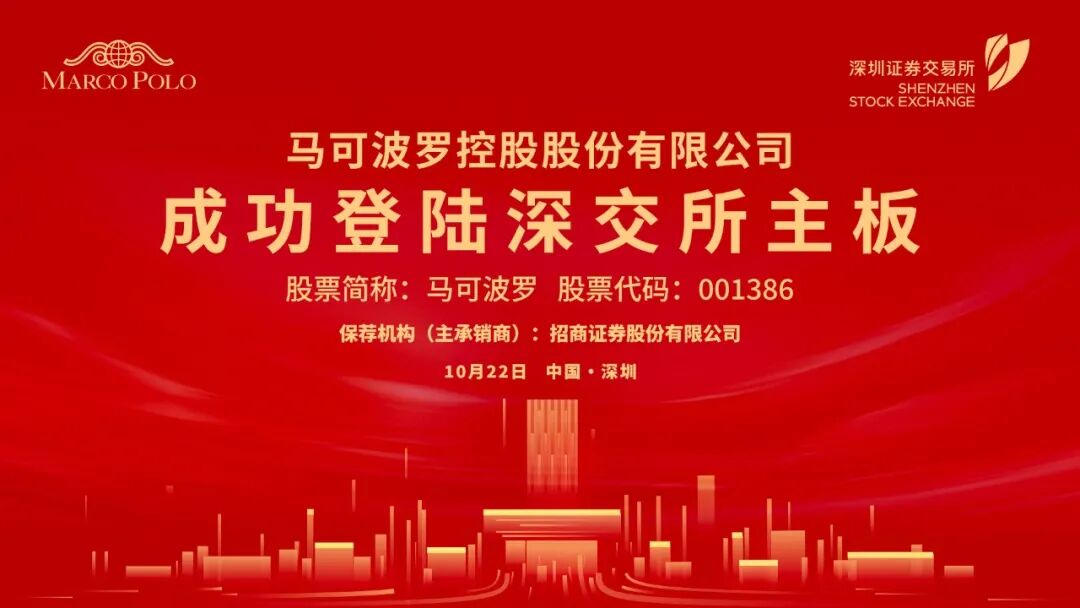 2025年10月22日,马可波罗(证券代码:001386)在深交所举行上市仪式。