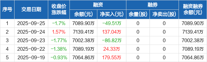 雪祺电气:融资净偿还49.51万元,融资余额7089.9万元(09-25)
