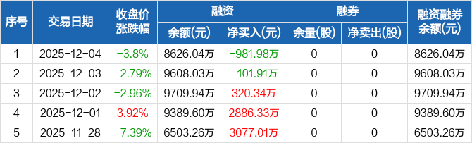 雪祺电气:融资净偿还981.98万元,融资余额8626.04万元(12-04)