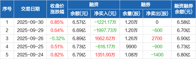 广合科技:融资净偿还1221.17万元,融资余额6.57亿元(09-30)