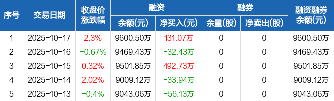 古麒绒材:融资净买入131.07万元,融资余额9600.5万元(10-17)