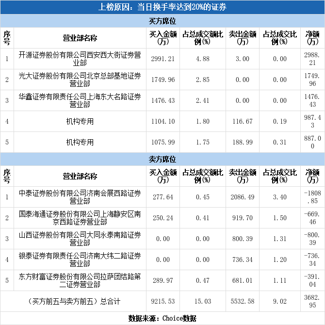 多主力现身龙虎榜,古麒绒材换手率达43.83%(11-19)