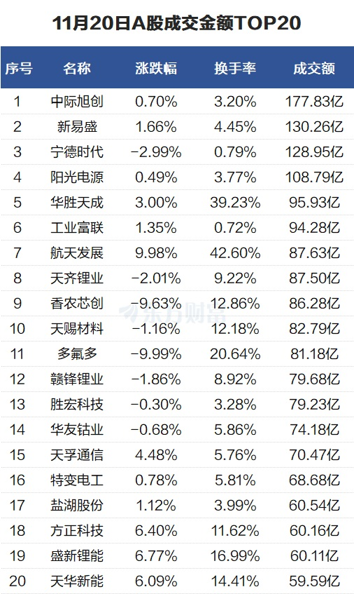 活跃个股:中际旭创成交178亿元 古麒绒材换手率59%