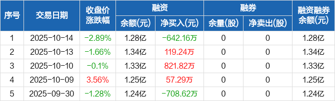 亚联机械:融资净偿还642.16万元,融资余额1.28亿元(10-14)