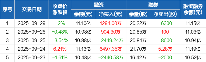 宗申动力:融资净买入1294万元,融资余额11.1亿元(09-29)