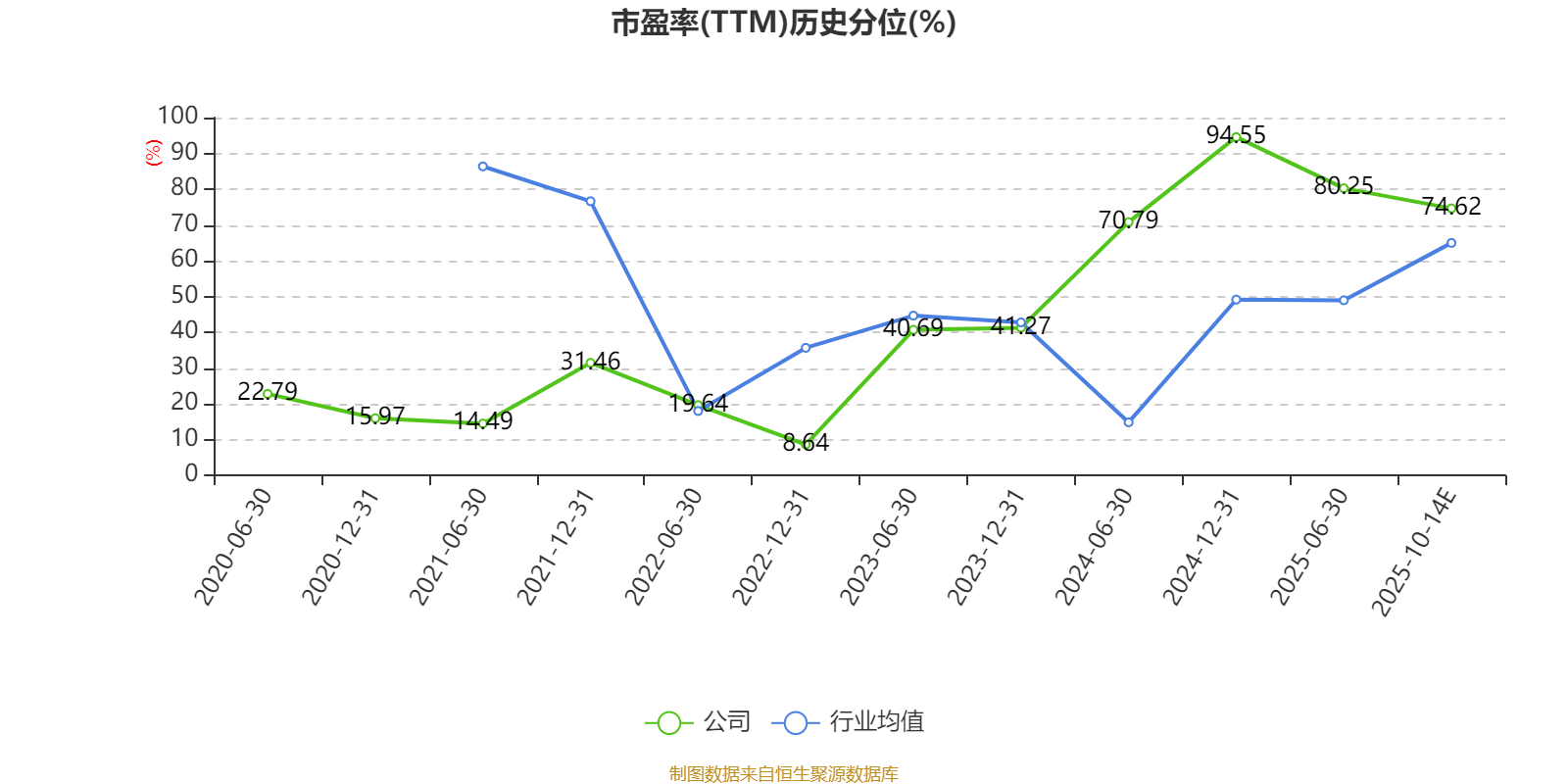 市盈率、市净率为负时,不显示当期分位数,会导致折线图中断。