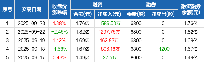 招商港口:融资净偿还589.5万元,融资余额1.76亿元(09-23)