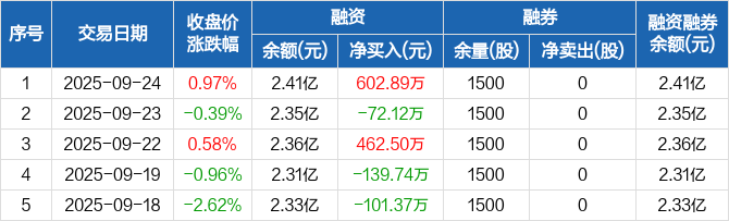 豫能控股:融资净买入602.89万元,融资余额2.41亿元(09-24)