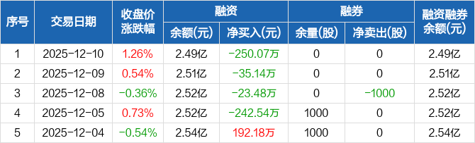 豫能控股:连续4日融资净偿还累计551.23万元(12-10)