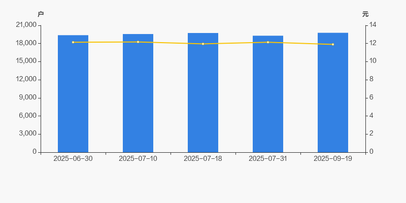 2025年6月30日至今,公司股东户数有所增长,区间涨幅为2.03%。2025年6月30日至2025年9月19日区间股价下降1.99%。