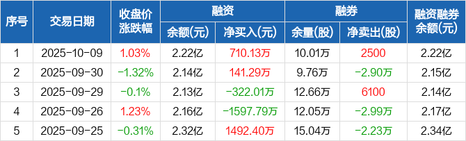招商公路:融资净买入710.13万元,融资余额2.22亿元(10-09)