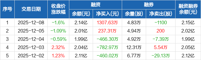 招商公路:融资净买入1307.63万元,融资余额2.14亿元(12-08)