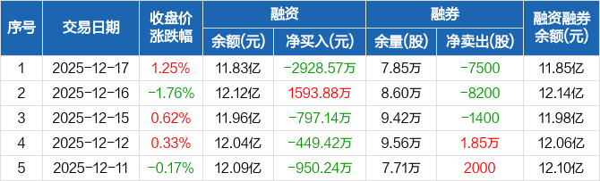 新和成:融资净偿还2928.57万元,融资余额11.83亿元(12-17)