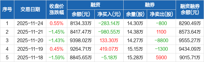 伟星股份:融资净偿还283.14万元,融资余额8134.33万元(11-24)