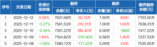 伟星股份:连续3日融资净买入累计456.86万元(12-12)