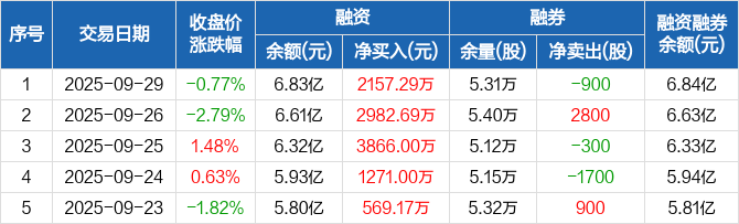 精工科技:融资余额6.83亿元,创历史新高(09-29)