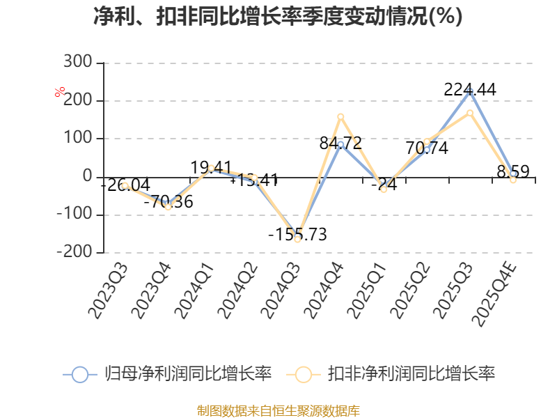 据公告,2025年度归属于上市公司股东的净利润与上年同期相比增长较快,主要原因为:2025年期间公司核心产业碳纤维装备的市场拓展成果良好,预计2025年全年碳纤维装备产品的销售收入同比增长60%以上;同时,碳纤维装备产品的盈利能力相对较好,从而带动了公司2025年度整体经营业绩的较快提升。