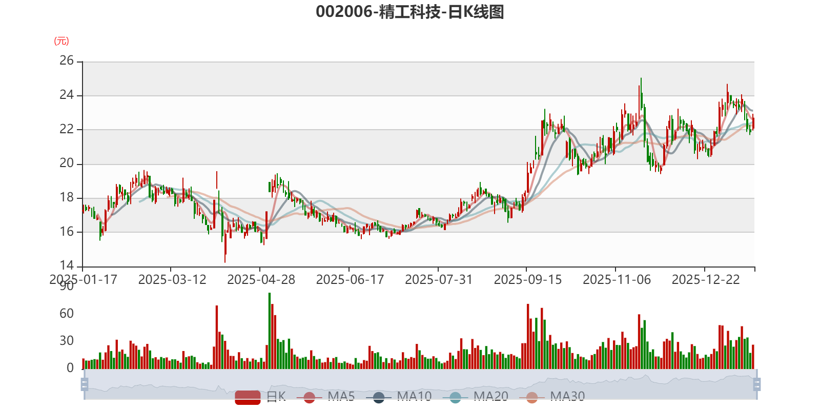 中证智能财讯精工科技(002006)1月16日晚间披露2025年度业绩预告,预计2025年归母净利润2亿元至2.5亿元,同比增长36.1%-70.13%;扣非净利润预计1.58亿元至2.08亿元,同比增长22.48%-61.19%;基本每股收益0.38元/股-0.48元/股。以1月16日收盘价计算,精工科技目前市盈率(TTM)约为47.16倍-58.94倍,市净率(LF)约4.9倍,市销率(TTM)约6.24倍。