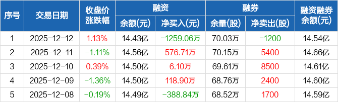 华兰生物:融资净偿还1259.06万元,融资余额14.43亿元(12-12)