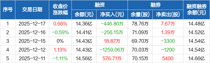 华兰生物:融资净偿还446.8万元,融资余额14.36亿元(12-17)