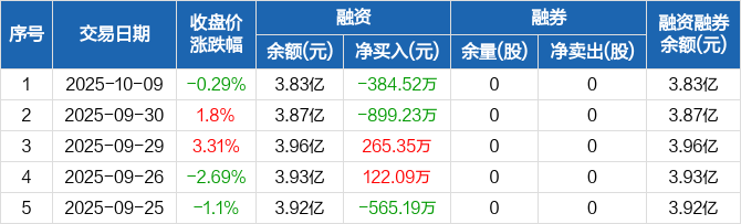 天奇股份:融资净偿还384.52万元,融资余额3.83亿元(10-09)
