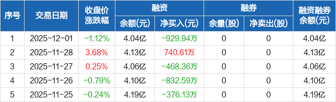 天奇股份:融资净偿还929.94万元,融资余额4.04亿元(12-01)