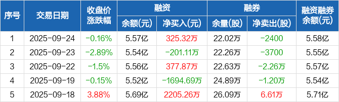 传化智联:融资净买入325.32万元,融资余额5.57亿元(09-24)