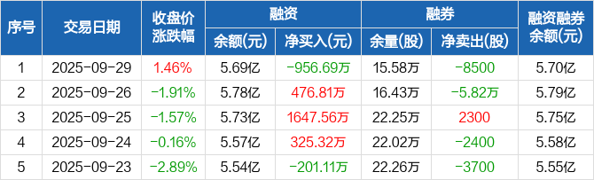 传化智联:融资净偿还956.69万元,融资余额5.69亿元(09-29)