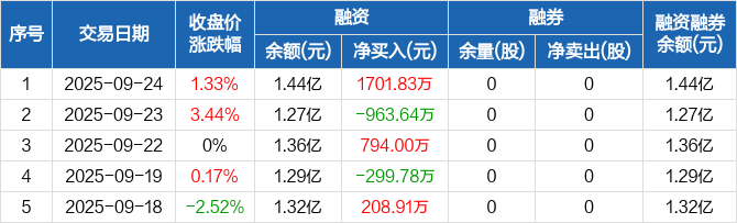 世荣兆业:融资净买入1701.83万元,融资余额1.44亿元(09-24)
