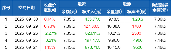 亿帆医药:融资净偿还435.77万元,融资余额7.35亿元(09-30)