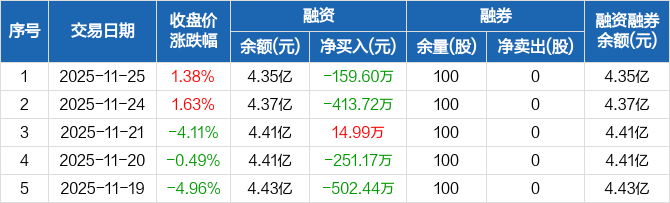 山东威达:融资净偿还159.6万元,融资余额4.35亿元(11-25)