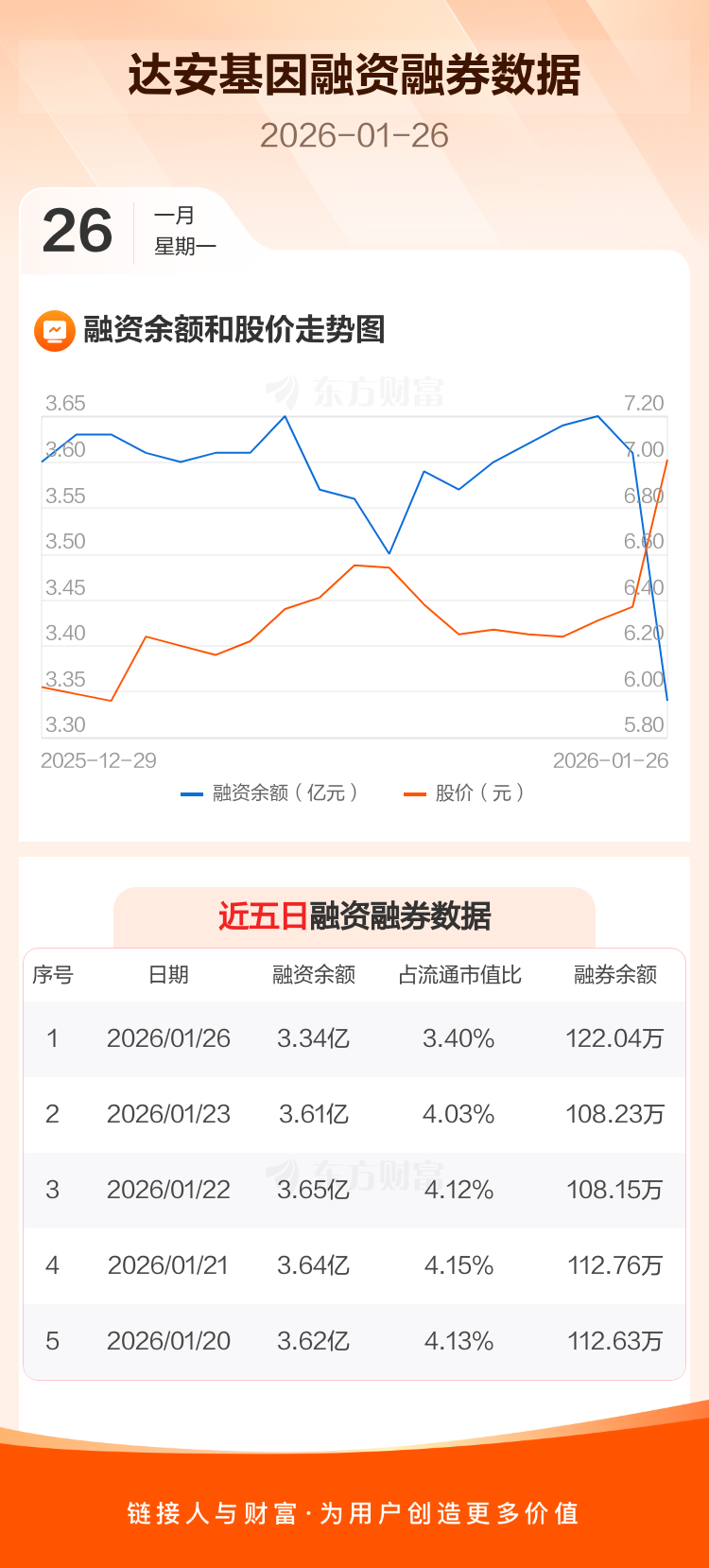 交易所最新数据显示,达安基因于2026年1月26日获融资买入3581.85万元,融资偿还6223.76万元,当日融资净偿还2641.91万元。目前,该股融资余额3.34亿,占流通市值比例为3.40%。
